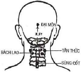 xuống 0,2 thốn. Ở sau gáy có 2, giữa Phong trì lên 0,4 thốn. (H.129)