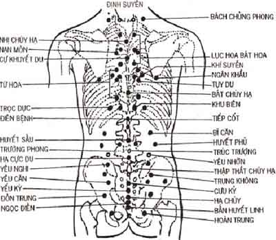 Châm đứng kim, sâu 0,5 - 1 thốn. Cứu 3 - 5 mồi, hơ 5 - 15 phút