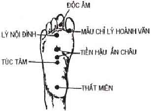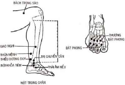 Ở khe nối giữa 5 ngón chân, cả 2 chân là 8 huyệt (trong đó bao gồm cả 3 huyệt: